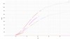 Visualizing the growth. Here are my OTT curves from last year and this year. The red is my 2560 from last year that ended up weighing 2465. The Pink is my 2560 in the patch now. The Blue is my 1713 from last year and the Yellow is my 2465 from this year. Crazy to see how close these two pumpkins growth curves are.