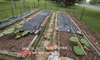 Two 656 Domke plants transplanted and growing nicely in spite of unusually cool, cloudy and rainy spring. Drip irrigation hose installed on right side bed, not in left side bed (which will probably become a secondary plant).