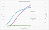 1526 Miller plants seems to be hanging in there despite another heatwave and minimal care-taking while I was away for 9 days. OTT = 239", estimated wt. 320 lb, 32 DAP. Days 20-25 it was averaging about 19 lb/day but it then slowed to about 12 lb/day the next 5. May be picking up speed again the last 2 days.