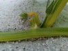 Very strange, the female I want to pollinate is doing a U turn, going back on itself and underneath the leaf! I'll have to remove the leaf and hope it all works out ok