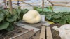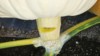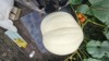 DAP 20 2nd pollination on Barron 2144 #2. OTT ...a disappointing 127" but as you can see, the 1st pumpkin decided to stop growing. The final 1/4 of the stem was cut today and you can see the stem to the right, dusted with sulphur.
