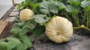 I know I'm short but these stalks and leaves make look even shorter lol! Seriosly, these leaves and all 3 of my plants have been awesome growers without complications or disease. For the last few years the company, Hygrozyme, has been supplying one of their products, Hyshield, for me to try on pumpkins. The main ingrediant of Hyshield is Chitosan. Chitosan promotes immunity and strength to plants. My plants have never been healthier and I'm certain that Hyshield has a lot to do with it. If you do nothing else re: pumpkins, study CHITOSAN.