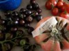 A good crop of concord grapes (right.) I did a "moderate" pruning method on these. It seems to have worked.
