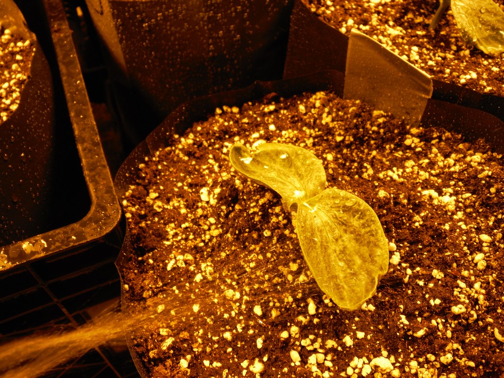 Giving the seedlings there first foliage feed.Just plain water.You wouldn't give a porterhouse steak to a baby would you?They wont get ferts till there in the ground 1 week.