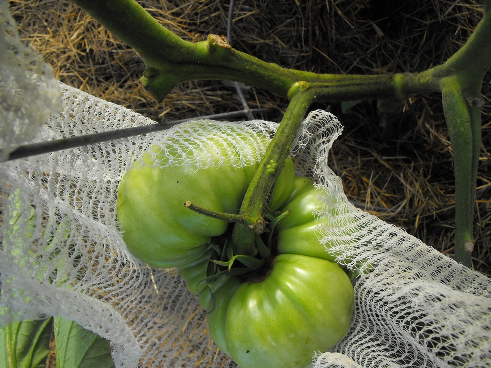 7.10 Foss (A)Plant Tomato getting some size with a nice thick stem. It has been so humid and rainy that roots are shooting out High above soil surface.