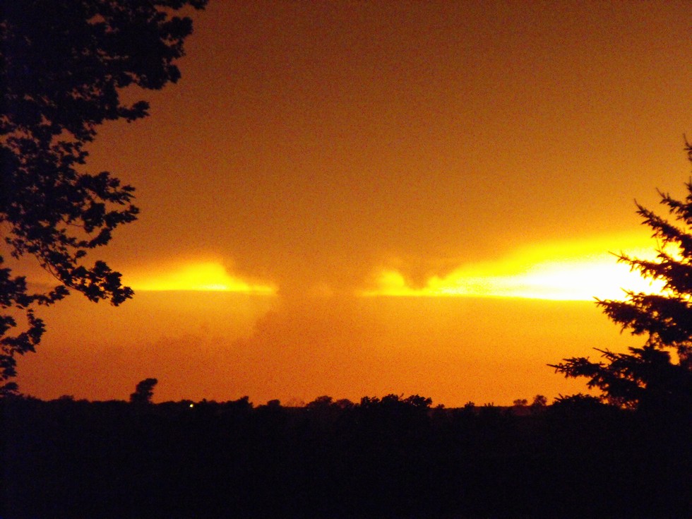 Heres smart thinking Dads pic of the funnel cloud. I couldn't believe how hard it was pulling the air towards it. there were a couple of little funnels dancing around it and they seemed to be sucked into the bigger one. This I believe was on the southwest end on the storm cell that was just passing as you can see the sun shining also. It was crazy for a minute or two believe me. You can also see the trees being pulled towards it.