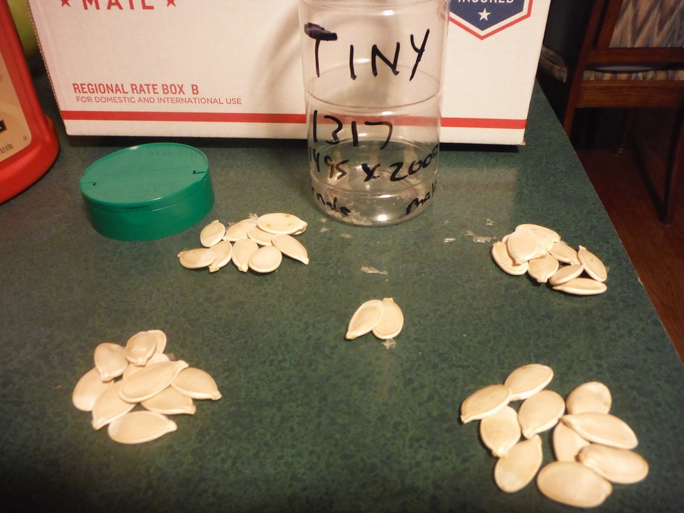 1317 Clementz 42 seeds left for the 2016 season.20 go to clubs.22 go to WWGG seed sales to fund prize structure & few great friends.Very limited.I have 30 left in the freezer for my own personal growing for the next 3-5 years.I did self this years 1317 TinyGotbackanegger.To free up any confusion.The 1317 was crossed with 1 plant.The 2009 Wallace.The fruit was shaped like the 2032 Mathison,buTT cracked sideways due to grower error(at300lbs).The 1947 was pollinated(multiple) with sibling 2009 wallace plants.Some of the 1317s like 15% come out creme color like the father 2009 wallace.I repeat there was 1 Plant used to pollinate the 1317.Thats all I grew in 2013 1 plant.I did use multiple flowers I always do.I was raised in the 60s Hippie times multiple flower pollinating was just a given then lol