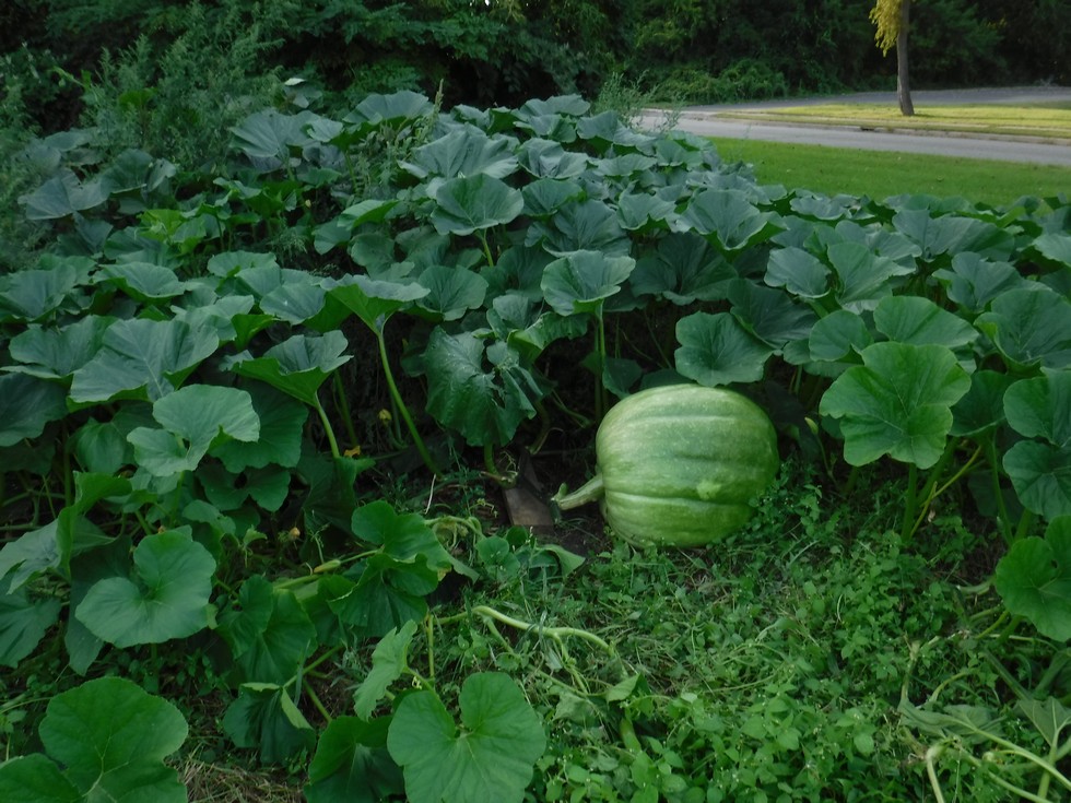 John Butlers Squash (2014) back up plant I planted in the compost pile.plant grew with no care.