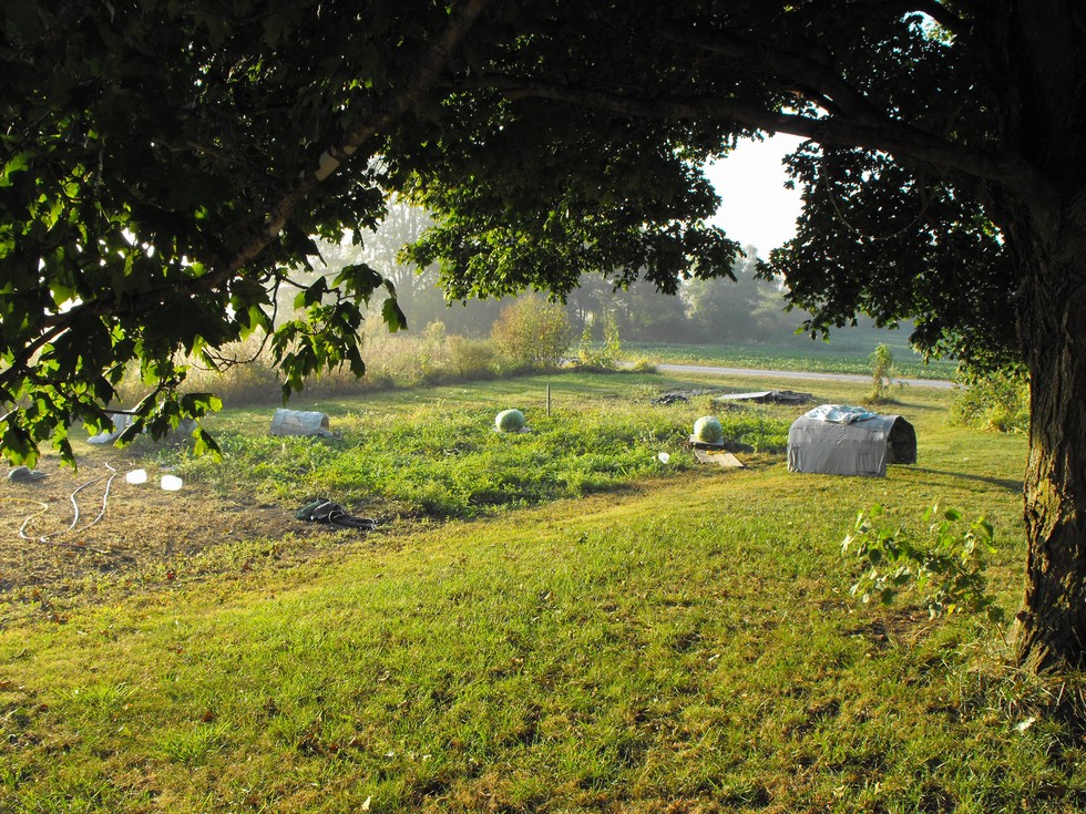 Anamosa Iowa Melons early this morning soakin up some Rays!! 1 for Show and 1 for GO!! They are both measuring exactly the same. The scales will tell who's for Show and who's for GO. 177.5 Berry on your left and my 117.5 J. Young on the Right. 7 more days!!