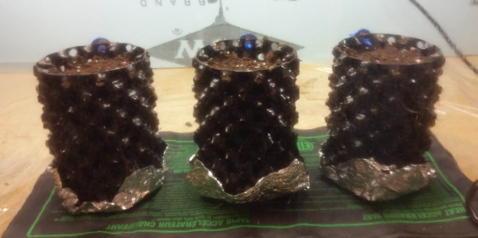 Seeds were then placed into 4" air pots and placed on the heat mat under fluorescent lights.
