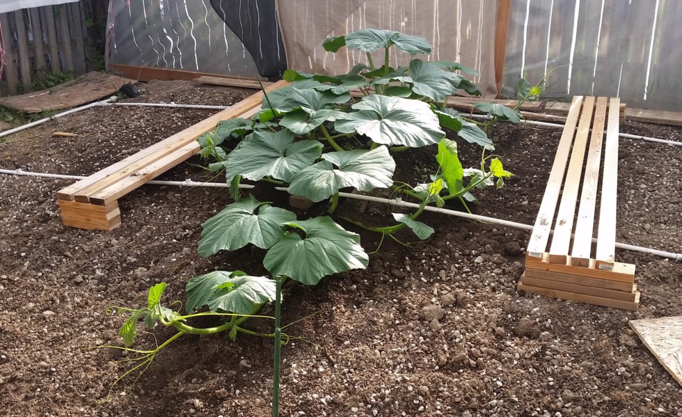 The 1781 has been in the ground for 5 weeks now. The main vine is 10 feet long. Added some elevated walking boards to each side of the plant.