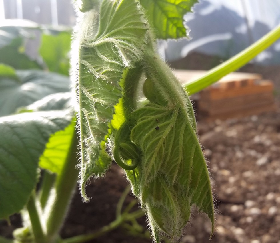 And we have our first pumpkin showing up on the main vine.