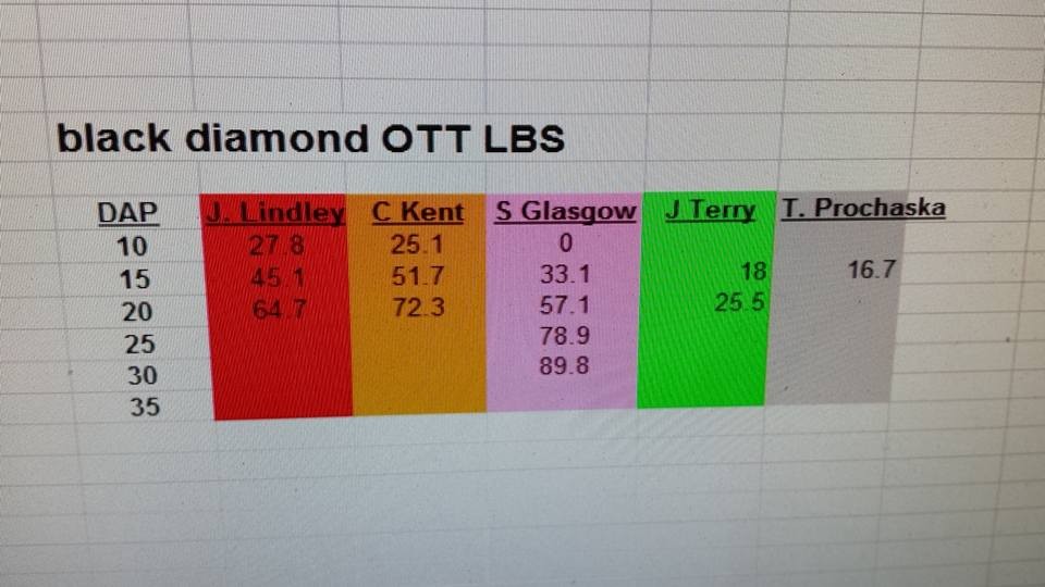 Black Diamond melon chart. Any one growing send me the numbers. Thanks Jeremy Lindley, Jeremy Terry, Tony Prochaska and Spencer Glasgow