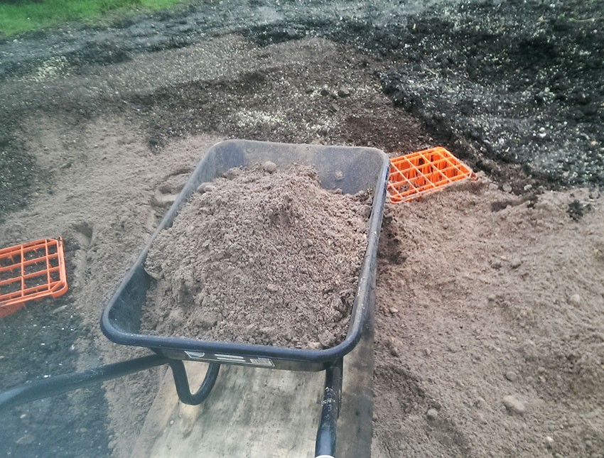 This new topsoil from another souce is a sandy loam, but it looks more sand than loam! I'll send off a sample to the lab to see exactly what's in it. The inverted milk crates are working well, I can work the land without getting all covered in mud.