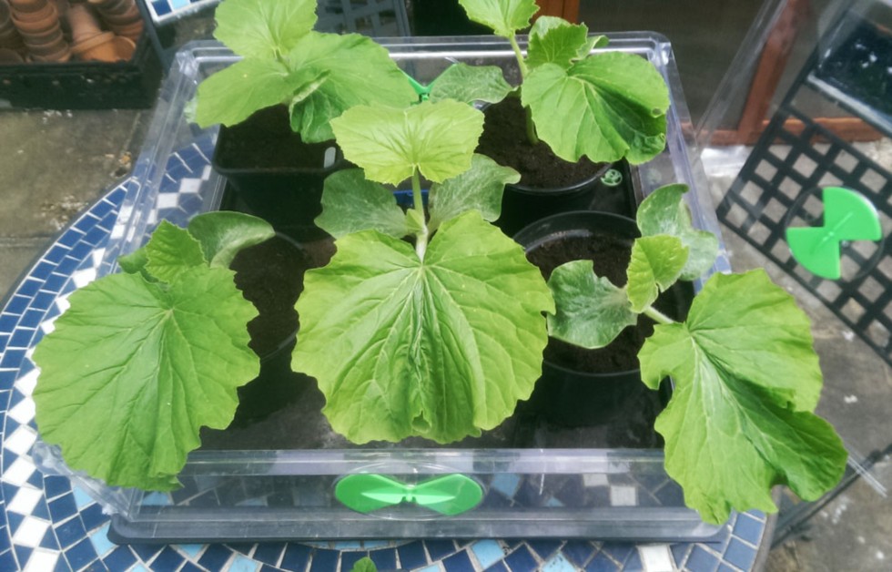 They're bursting out of the mini greenhouse and are desperate to be planted out, roots growing outside of the pots now.
