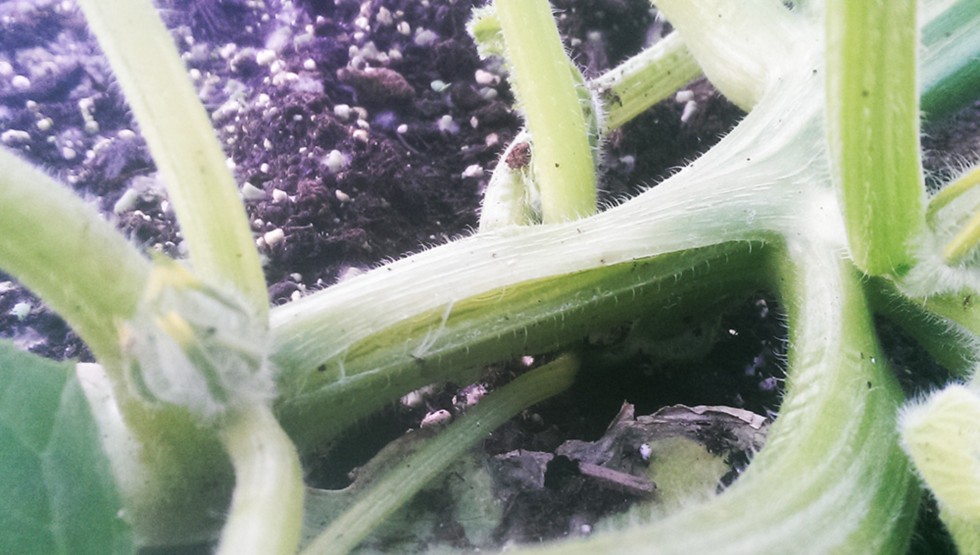 OK so I go away for 3 days and during my absence there's a storm and nobody to batten down the hatches. As such many leaves on both plants are looking battered & bruised with a few stems broken. Worse than that is this 4" stem split on the Paton, right near the stump. I don't have experience of this before, so I have no idea if it's no big deal or if this plant is now good only for the compost heap. As it happens, I only have 2 plants now, so I'll dust it down with sulphur and see what happens. I might even plant some more seeds, even at this late stage.