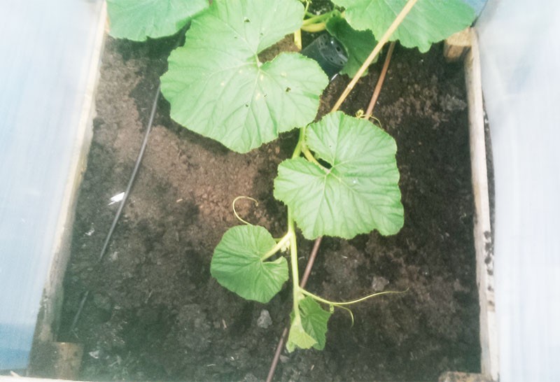 This is the 333 which is about 5 feet long now. I'm continuing to protect the growing tip by moving the cloche forward as it grows. The cloche is 3 sided and protects the delicate growing tip from the wind which can not only dessicate but also physically damage the young leaves.