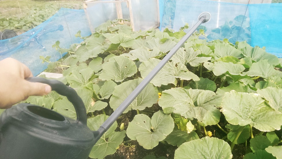 A simple solution to the problem of getting water & feed into the middle of the plant area, without treading on soil & vines!