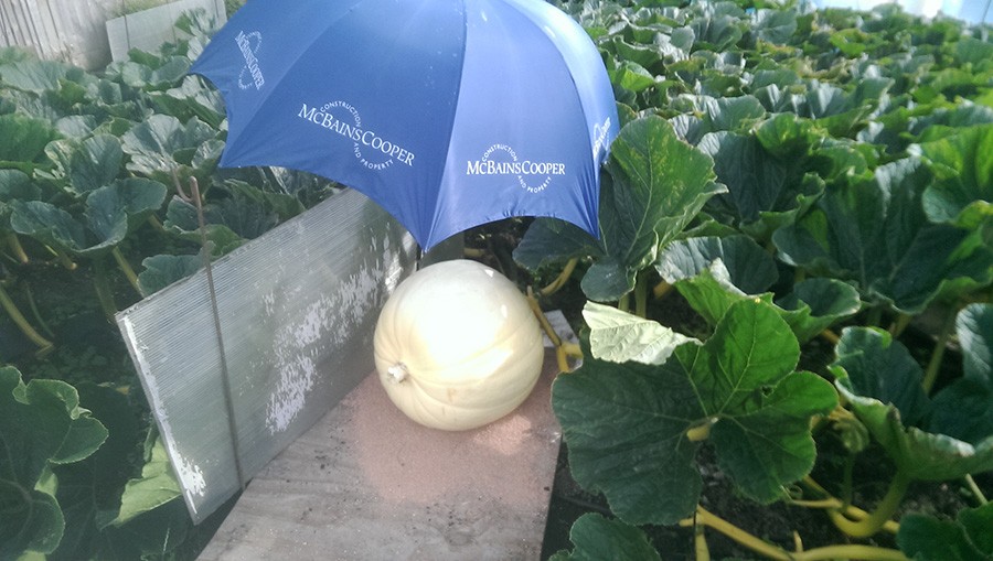 And here is the 333 side vine looking good for 31kg (68lb) at 24 DAP. A nice round shape, and a deep yellow colour. The position on the vine is decent too and it's about 12 feet from the main. This is the only pumpkin on the 333 now. It's had a lot of rain all week and not much sun. This evening I did another foliar feed with Epsom salts.