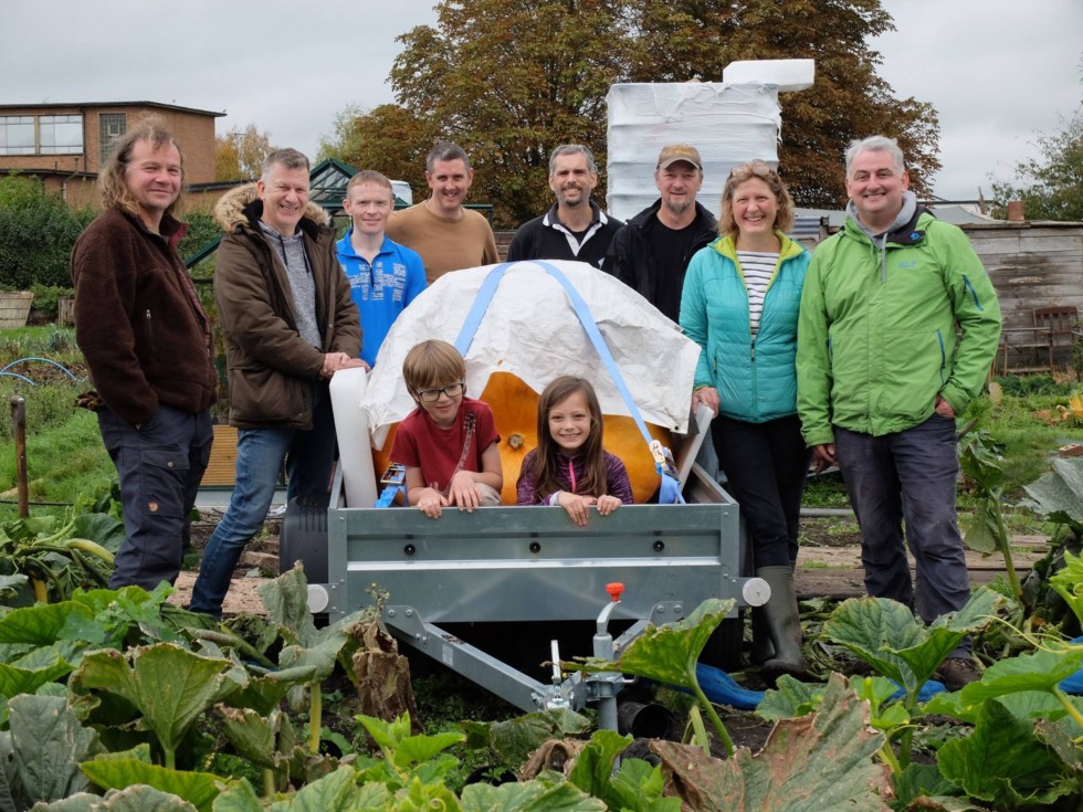 With a little help from our friends we managed to successfully transfer the pumpkin onto our trailer this morning. There were a few problems but between us nothing we couldn't work out. Now for the RHS show in London tomorrow! Here is a short video of this morning's efforts: https://www.youtube.com/watch?v=bDvbTFxxg6w&feature=youtu.be
