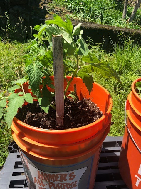 Submitted by the Arceo 'Ohana - Plants are looking great!...doing the 5 gallon bucket challenge.