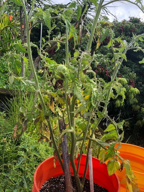 Submitted by the Arceo 'Ohana for the 5-gallon bucket challenge...struggling a little...we've made some suggestions...hoping their plants will bounce back...