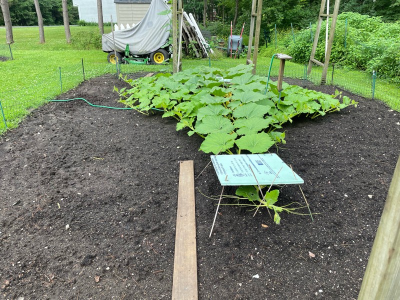 The 691 in the old patch is struggling a bit with muddy soil but has a baby at 14 feet that should be pollinated this week.