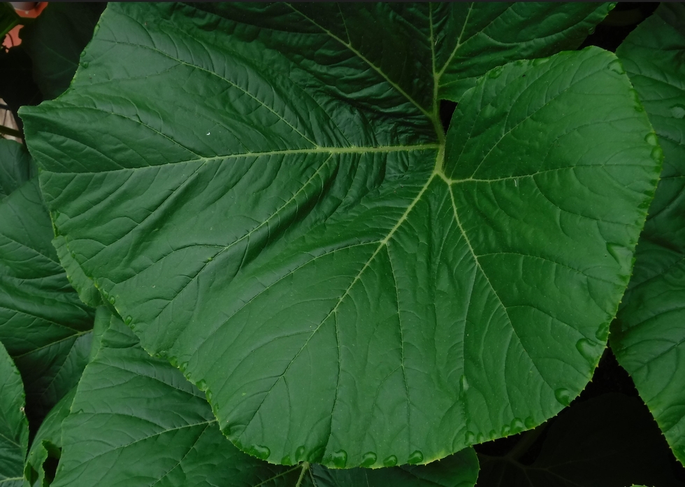 Look carefully at this image as there is something important to notice. Looking at the leaf margins water droplets can be seen fairly consistently around the entire perimeter. This is an example of guttation which is basically the result from water being pumped up through the plant so forcefully that it comes out of the leaves. Overnight the humidity is high (in part due to the simple decrease in temperature) so it can not simply evaporate and it remains on the perimeter of the leaf surface.