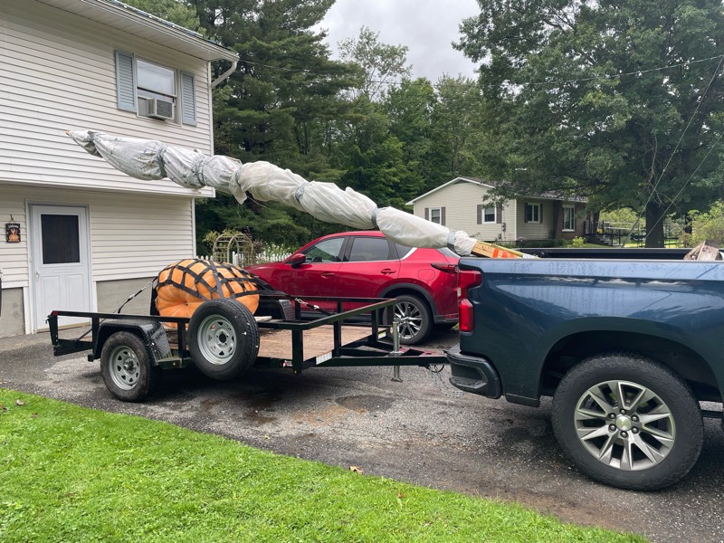 Here we are loaded up with our 17'7” sunflower hanging out the back.
