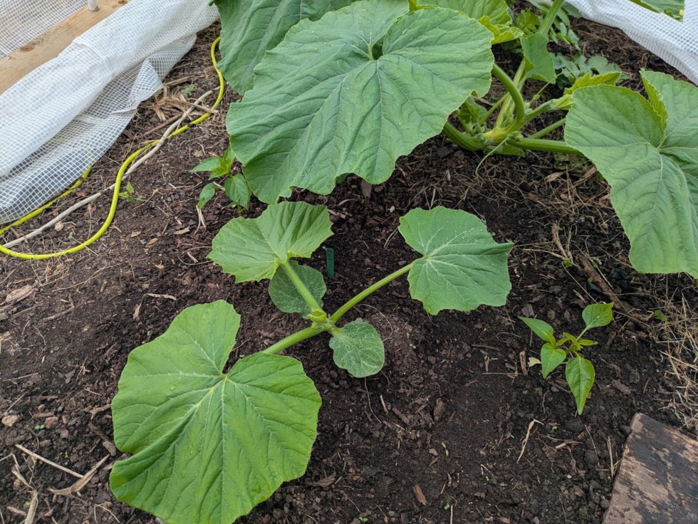 It's amazing how much they've grown. The one in the foreground was planted out just a week ago with 1 true leaf. The pollinator plant in the background, a few weeks ago. I do not do soil heating cables but I have a very basic heater that at least keeps the frost off on cold nights. Hopefully the frost on the 16th of April was the last of the season.