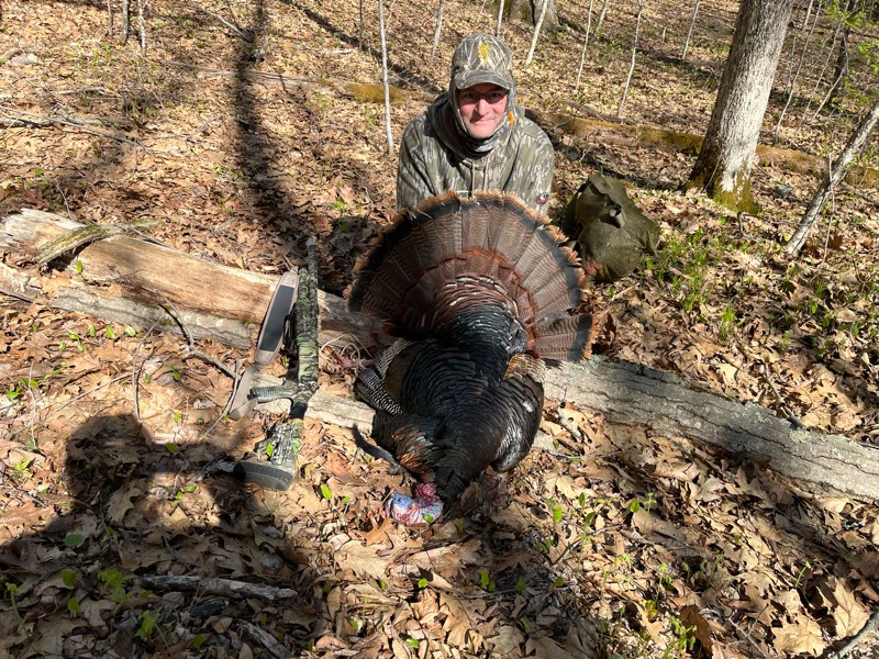 Yesterday was opening day of our Spring turkey season. Gary Vincent and I had a great hunt! This bird tried to be tricky and came in behind and above us on a ridge. Gary's calling brought him right to me. 17 yard shot!