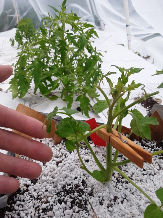 This graft took I think. Been 5 + days now. It never even wilted. Got lucky I guess. In the background is a group of decent 8 lb Strickler plants... one bigger than the others.