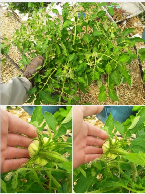 5.16 Greene x 2 plants... Here I cant really cull either plant because they are both doing equally well, and they have some of the nicest side blossoms too. I'll inspect their tomatoes to see if they are fused and await any BER... But the forcast is looking excellent for avoiding BER. These plants and most of the other plants are large enough to push 5+ lb tomatoes. So things are looking good. The "slower to grow/ bloom" plants had some very nice megas, finally. I won't post a dozen pictures but trust me that the slower/smaller plants can be worthwhile as long as they aren't deformed they probably aren't really inferior, and in fact may be superior.
