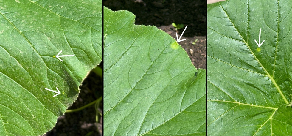 Time to test your pumpkin leaf problem knowledge! The first person to correctly identify this pathogen get 2 points. I will post the answer tomorrow. Bonus points if you know why this is on my plant.