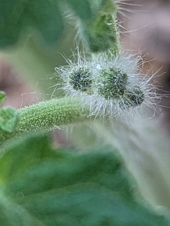 So it's sucker choosing time. I never know which sucker to let be my second main vine....well today I realized something that makes that decision easier. This photo is of the tiny tiny flowers on the first sucker. They are all the same size. But......