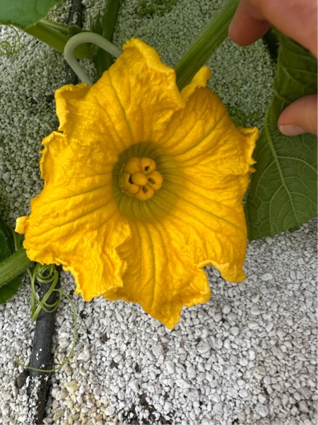 Pollination Day! Five lobe flower; a little wonky but not bad. She's at about 18'.