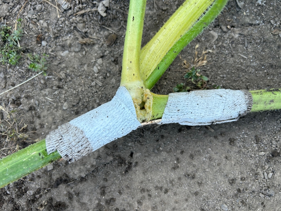 This is the cracked main that I attempted to mend. It didn't completely break, but I wouldn't want to grow a fruit beyond the crack.