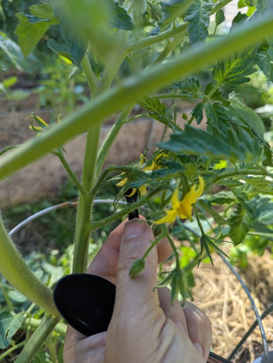 Pollination day 2. It should be day three but the storms the night before and yesterday made that impossible. This is the 7.94 La Rue the smaller of the two plants but the first to bloom.
