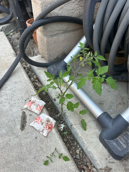 So I can just ignore the little guy. Or worse yet pull it out. It's got blossoms for gosh sake. So I got out some super starter paks and stuck them in the crack.