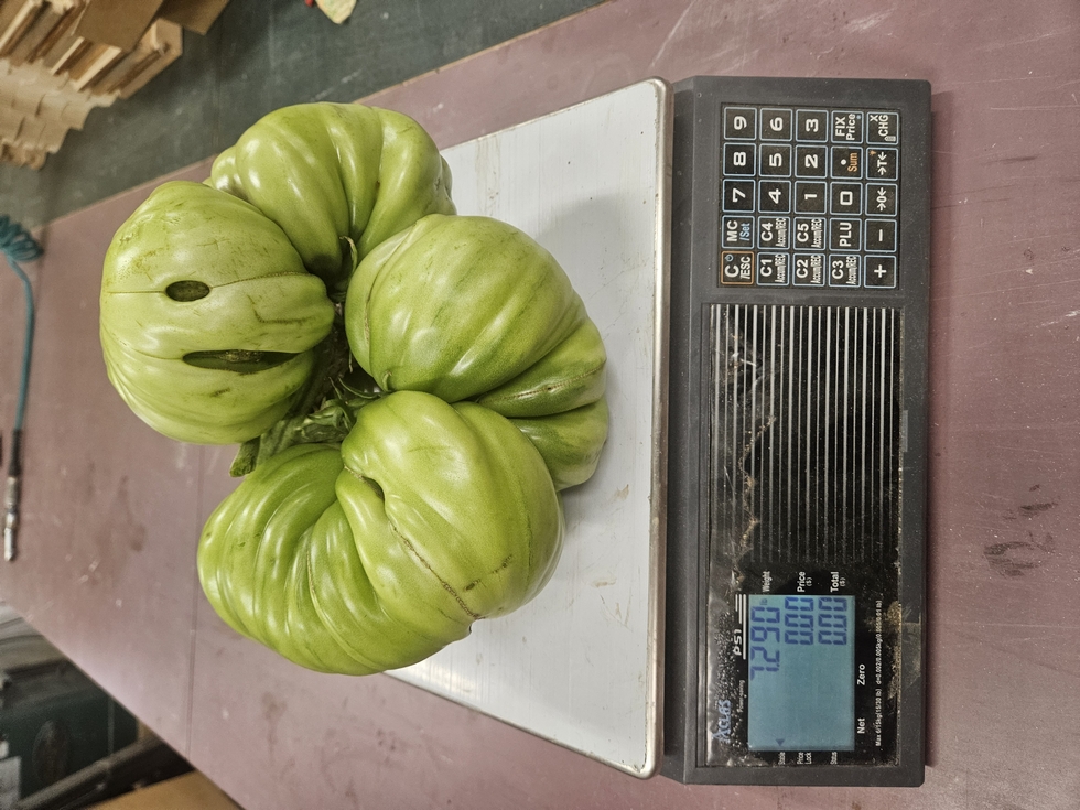 Please disregard the post that's coming,I feel really stupid as I misread the scale for a tomato that had ber. I said it was 12.90 lbs and it was only 7.29 pounds,I guess old age is having its effect.lol