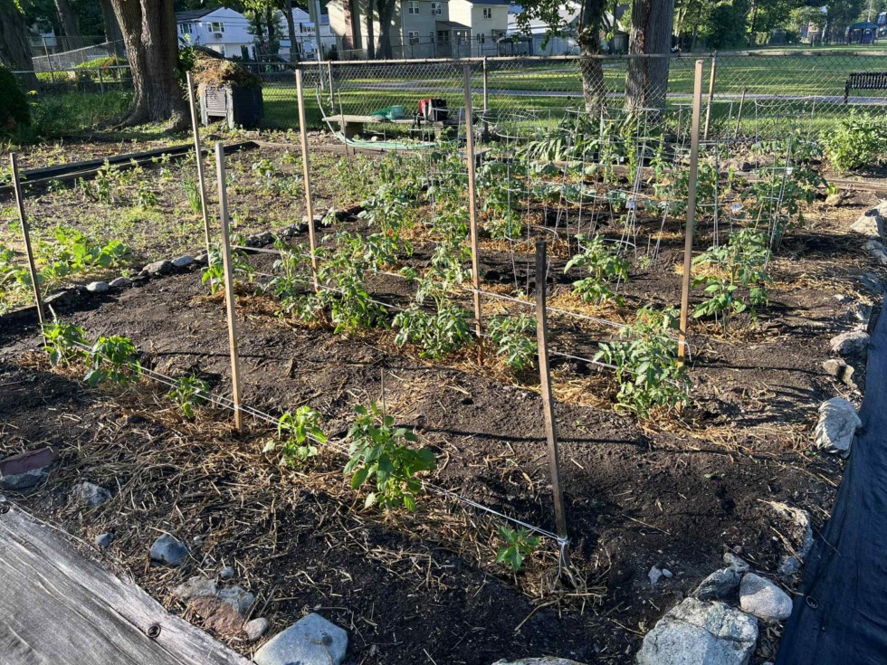 The veggie garden is in summer mode. The FL Weave has gone up. The trenches are mulched-the straw is actually from our 2024 fall harvest display. We added an extra row this year and are doing 24 tomatoes! We actually direct seeded some Super Sweet 100s today. Those should give us a fresh plant for the fall and they mature all the way to Halloween.