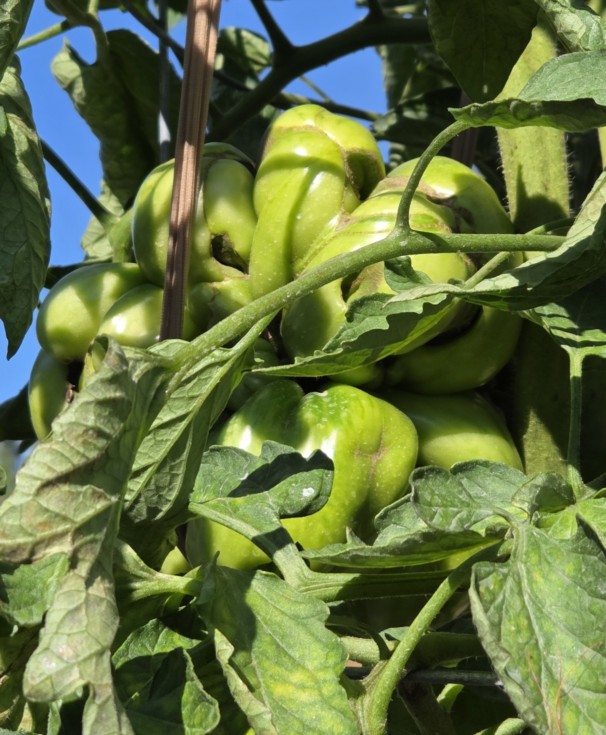The runt 9.06 Brown seedling now hosts my #1 fruit. It's DAP 25 and 24", this could be one to watch. The early BER seems to be well controlled now. Really liking the shape and trajectory.