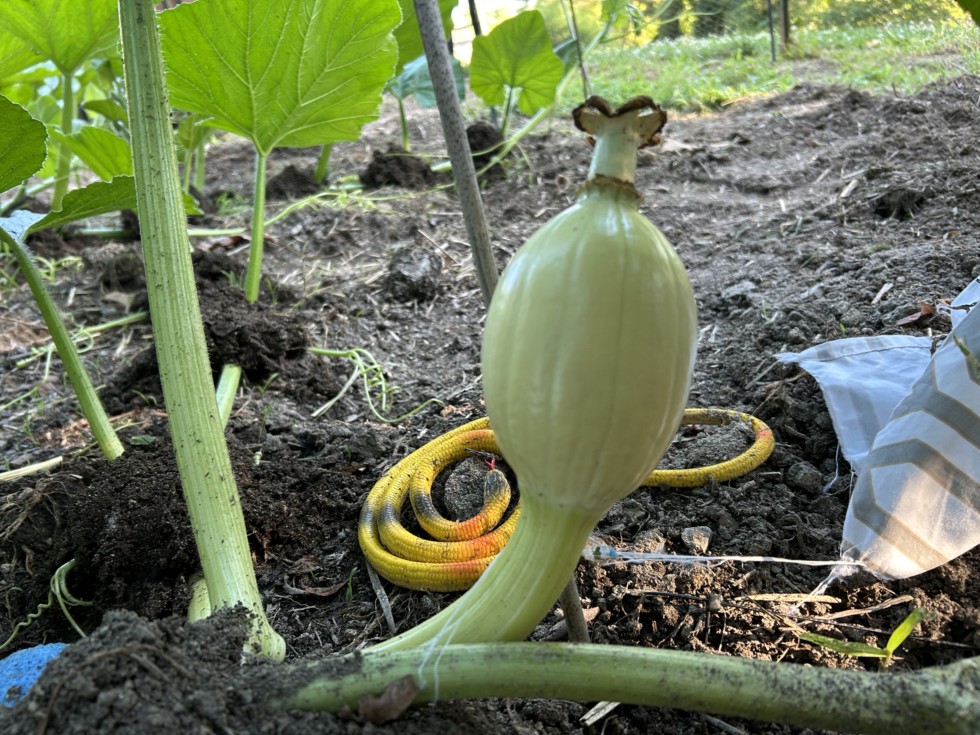 July 4th update, 2014 Leonzi x 2360 Montsma. This plant seems to only put out great looking football shaped pumpkins. Just 95 days to go.