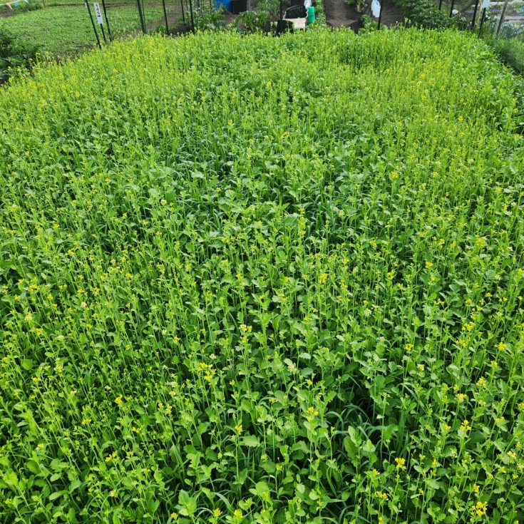 Cover crops trifecta mustard, buckwheat and alfalfa in bloom. Day to cut down and till in.