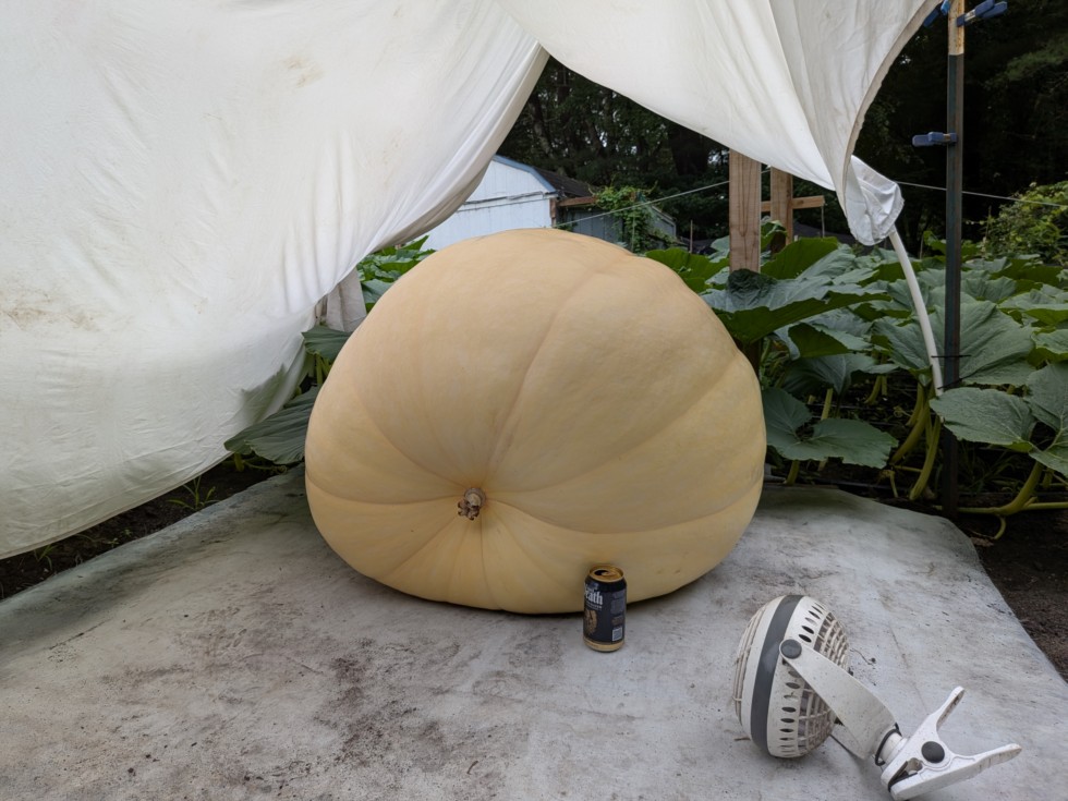 All my plants now have pumpkins set up. I'm behind my personal best, but the plants are seeming healthy so we'll see how it goes. This is the 2465 Sperry, 33 days old, 415 lbs