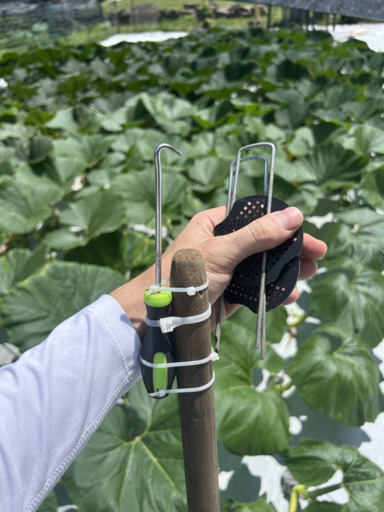 This is my device that I use to remove the staples from my vines after the adventitious roots get established. That way I don't have to walk into the plant and damage the roots.