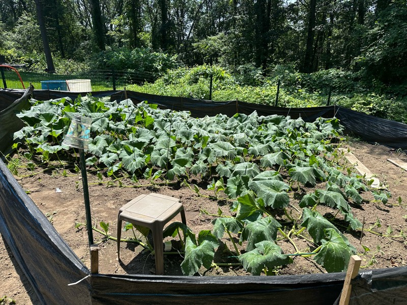 The butternut plant has gone insane. Unfortunately I am 0 for 2 on getting any successful pollinations due to no male flowers opening the same time. The pollen I refrigerated was unsuccessful with the butternut I pollinated last week.
