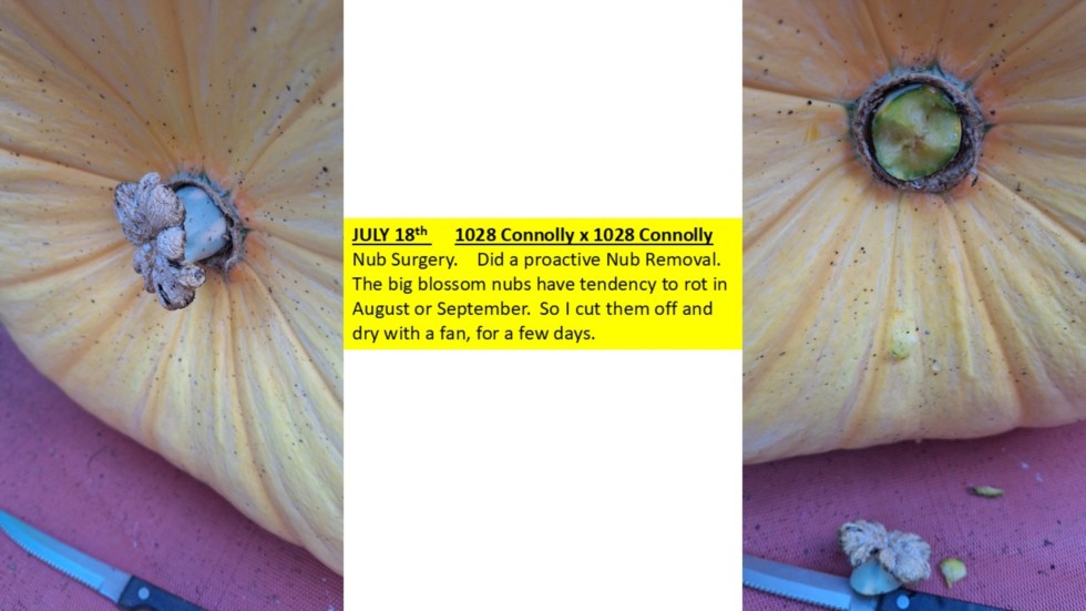 Nub Removal Surgery on the 1028x1028 (150 Challenge Pumpkin). Simple Proactive care to prevent Nub Rot problems later in the season.
