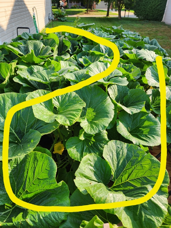 When I set up the 150 sf patch this year I decided to start the plant in a corner and run the main in a reverse "S" pattern. It's worked out pretty well. If I ran the vine straight down the middle we might not have a pumpkin growing on the main vine at all. A straight 17' to 18' might not be long enough. With the colder weather this spring, we'd have had fewer chances for sure. With the reverse "S" it added an extra 8' or 9' (or more) of main vine in my patch. The photo shows the pattern I used.