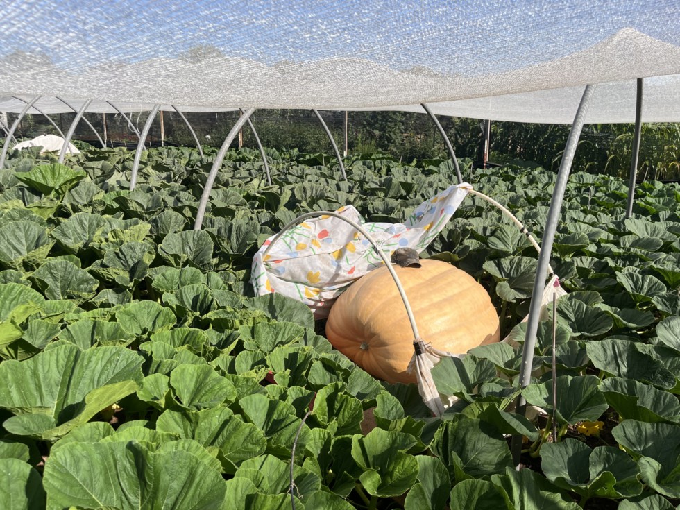 2147 Marshall on day 38 measuring around 600 lbs. Lots of sapping and cantelouping on this one. It's one of the nicest looking plants I think I've ever grown, but the pumpkin just doesn't want to kick in.